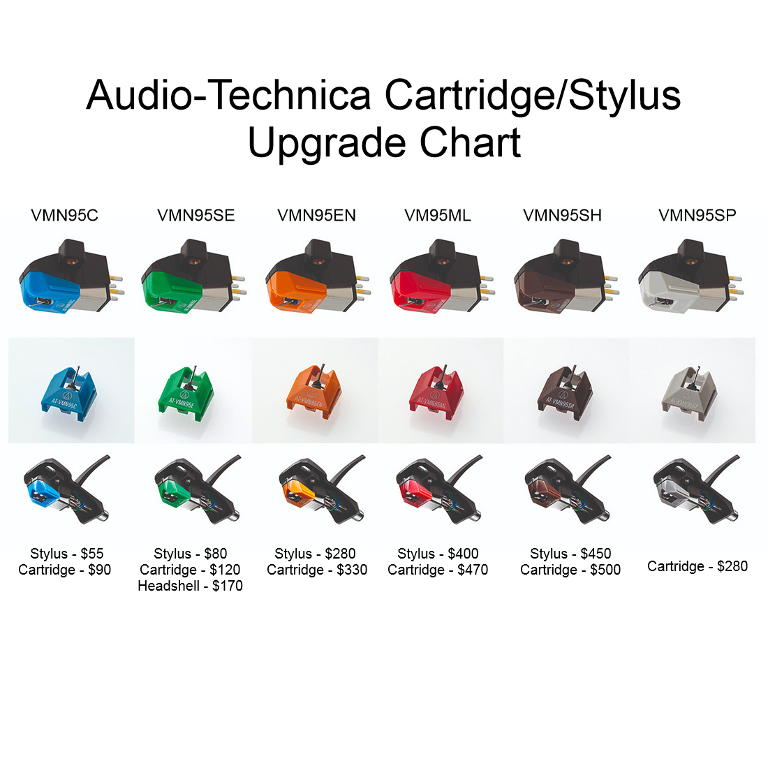 - AT-VM95E cartridge is compatible with any VM95 Series replacement stylus, offering a wide choice of options for every budget and application