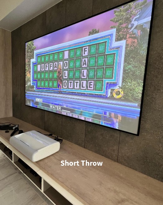 This is a projector screen that is suitable for both Ultra Short Throw (UST) and regular (Long Throw) projectors!