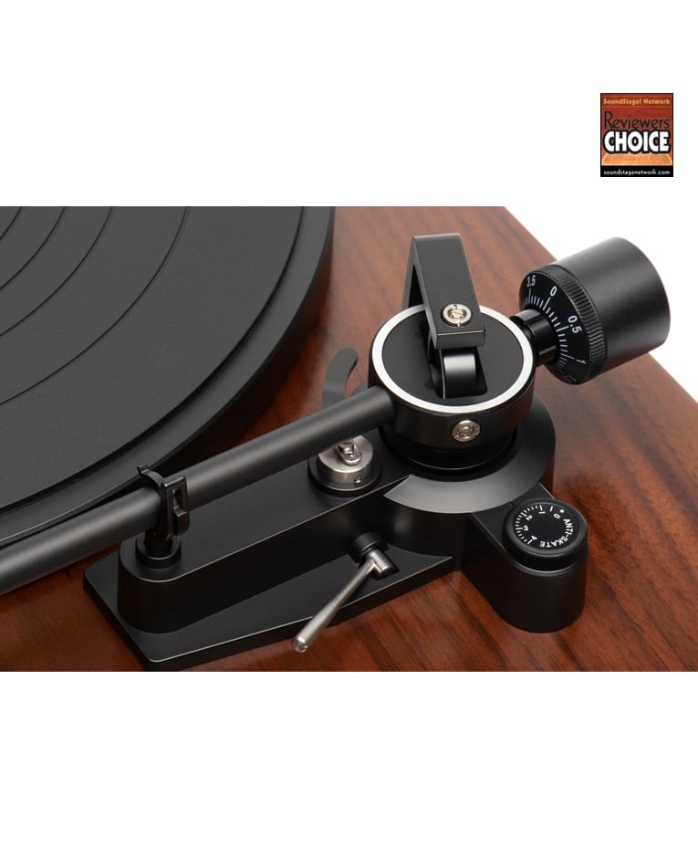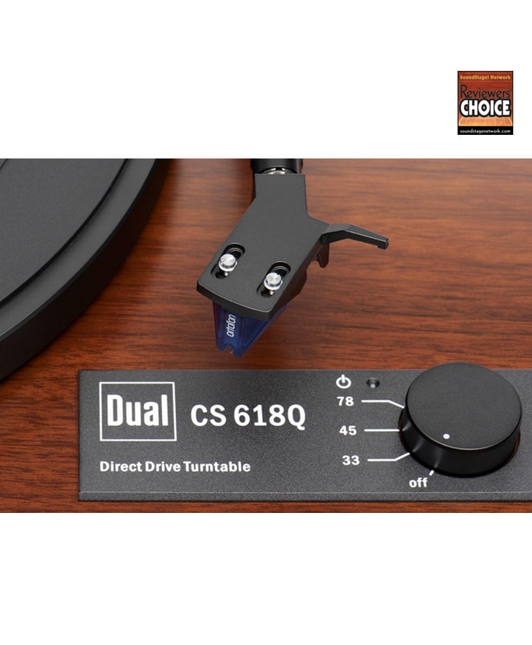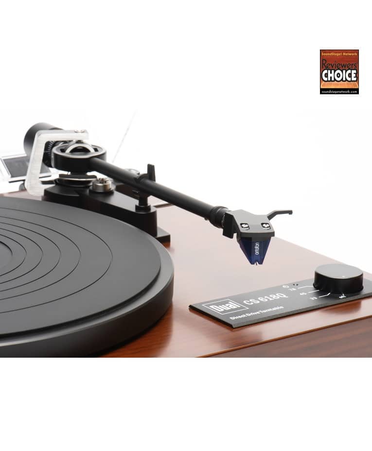 The Dual CS 618Q strikes a nice balance between high performance and crowd-pleasing convenience. It’s built around a quartz-stabilized brushless direct-drive motor that offers reliable speed stability and very low vibration. It features a solid MDF plinth, heavy die-cast aluminum platter, and stabilizing feet that reduce unwanted resonance, so you hear only the music. An ingenious twin-gimbal design with pivot ball-bearings allows the lightweight aluminum tonearm to read a record groove with extreme precision.