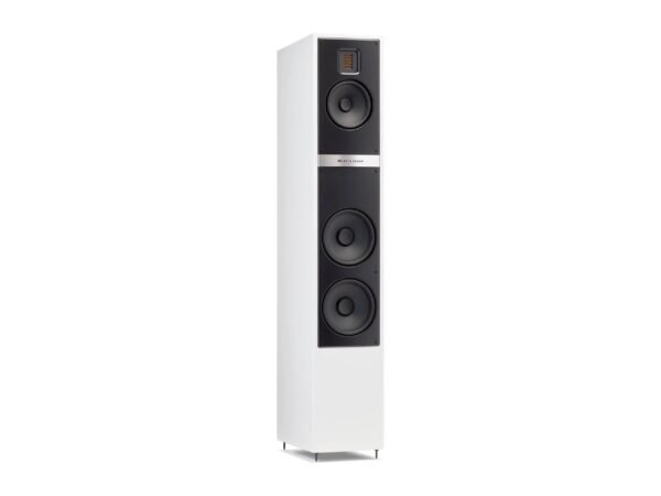 The speaker’s enclosure sports a reinforced baffle and a fabric grille. Available in three stylish finishes: gloss black, matte white, and red walnut.