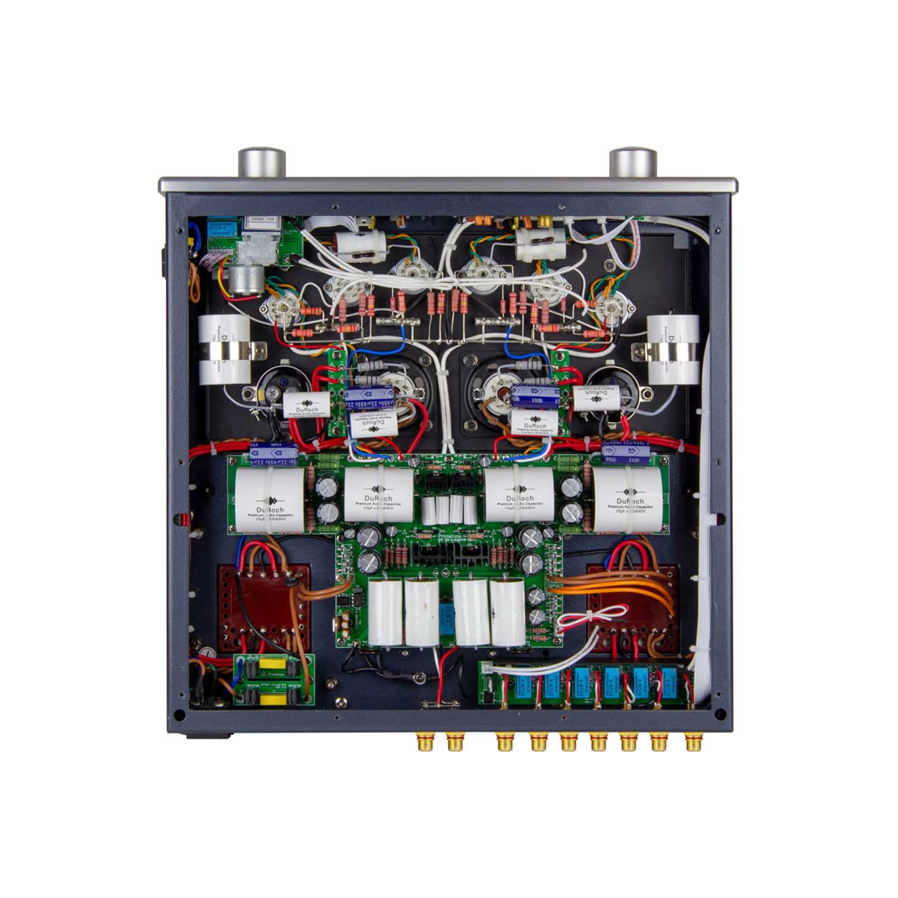 Inside, you will find point-to-point wiring with only the best Swiss silver wires–a level of detail that is usually only available (and not always!) in the most expensive tube equipment.